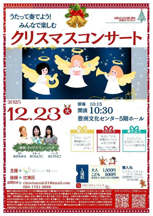 12/23(火) うたって奏でよう!みんなで楽しむクリスマスコンサート豊洲文化センター